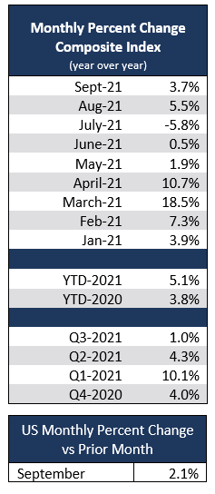 The MIB Life index shows that U.S. life insurance application activity finished Q3-2021 flat at +1.0% compared to Q3-2020. Year-Over-Year (YOY) September 2021 activity is up +3.7% compared to September 2020 and on a Year-to-Date (YTD) basis, activity was up 5.1%. While YOY comparisons are impacted by fluctuations in 2020 activity due to COVID, when comparing results to 2019, September 2021 is up +13.7% YOY and 9.2% YTD.